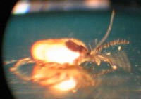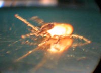 Dieser wird unter die Zecke geschoben, anschließend dreht man ein - zweimal den Haken im Kreis und hebelt dann unter leichtem Druck und weiterem Drehen die eingebohrte Zecke heraus.