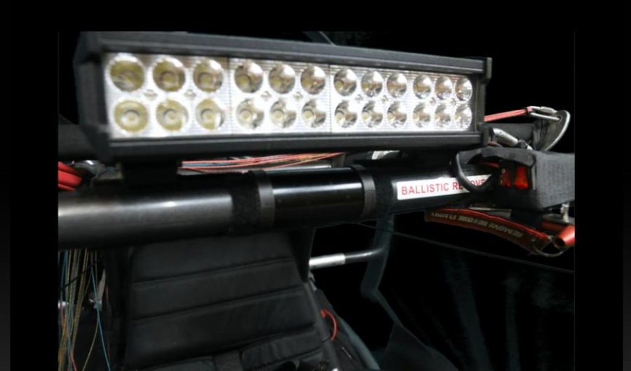 Ein sicherheitsrelevanter Aspekt beim Fliegen ist das gesehen werden. Ein 72Watt starker Frontstrahler sorgt dabei für ein deutliches Lichtsignal nach vorne. Hier ein Video vom Einbau.