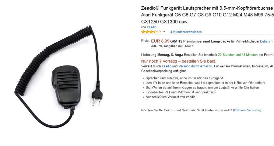 ... um den Klinkenstecker mit einem Handmikrophon zu koppeln, an das das LPD angeschlossen ist. Zu beziehen über Internet für unter 10 Euro.