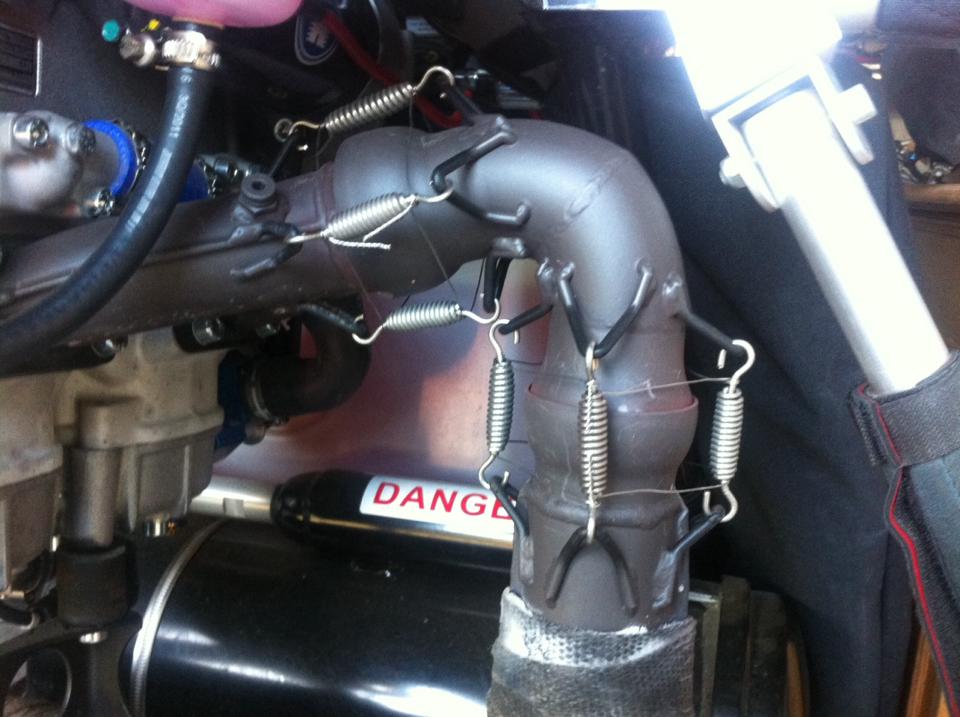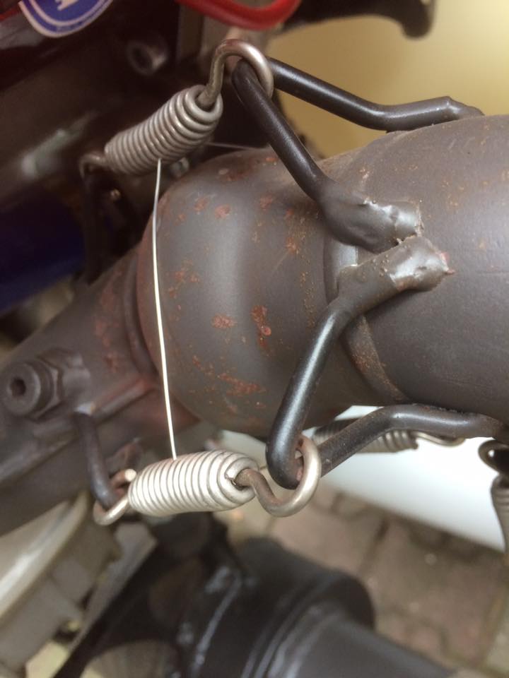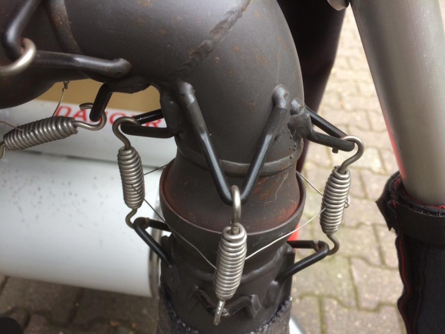 Die Federn, die die Aupuffteile miteinander verbinden, können brechen. Folge sind u.a. Beschädigungen des Propellers.
