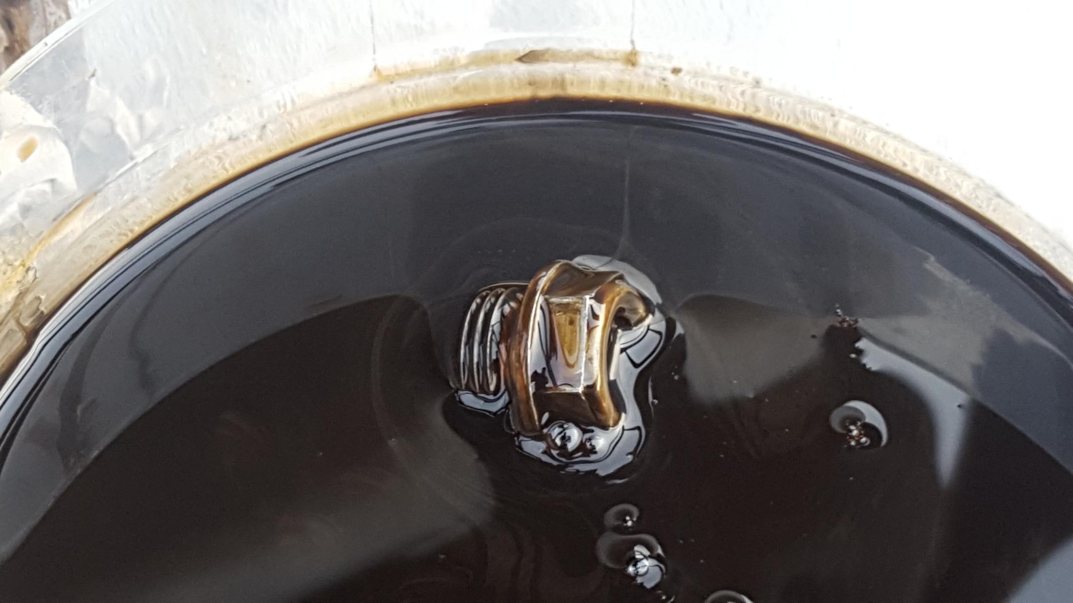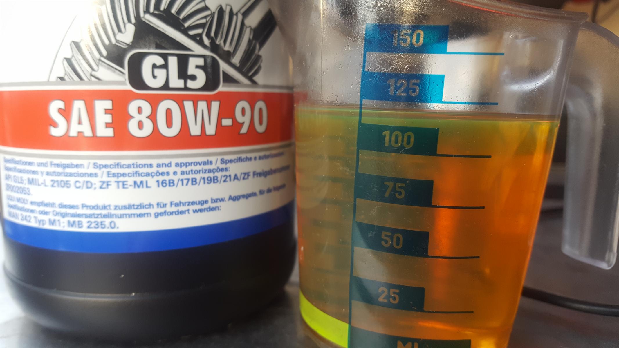 Danach Öl eingießen: Mit 120-125ml Getriebeöl auffüllen (75W90 oder 80W90 oder 85W90, egal, hauptsache GL4 oder GL5)