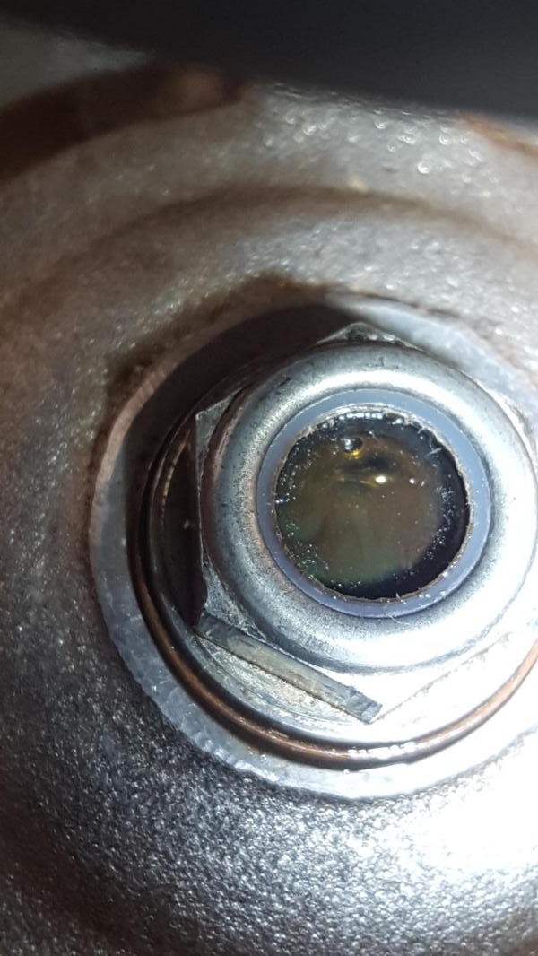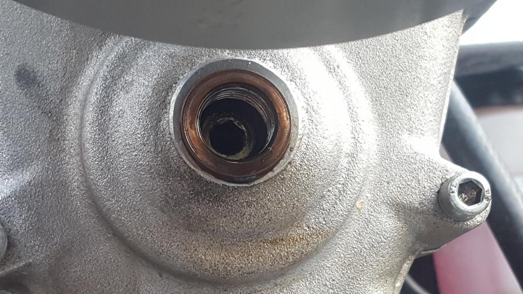 In diesem Fall vor dem Einfüllen des neuen Öls die Schraube mit 17er Schlüssel rausdrehen. Vorsicht, daß der Dichtring nicht verlorengeht.