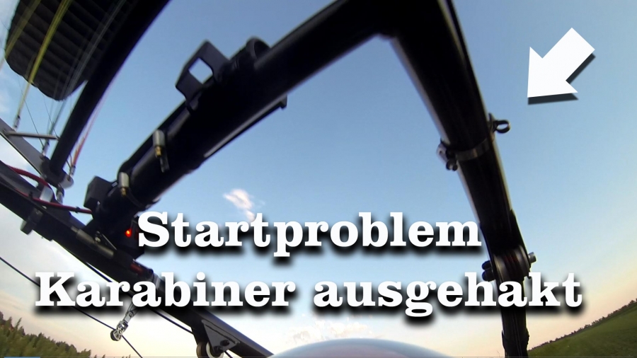 Ein kleines ärgerliches Problem beim Startvorgang: Der Karabiner der rechten Steuerleine hat sich beim Start ausgehakt.