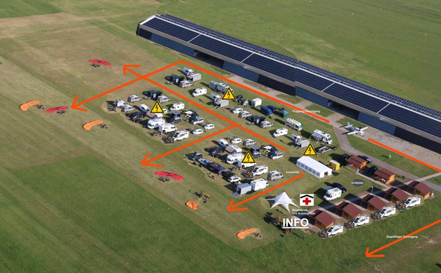 einfach durch und direkt bis zum Briefingzelt/zur Briefinghütte fahren. Anmeldung bei Andree an der Briefinghütte, nicht am Tower. Wenn Du vor Dienstag ankommst oder nach Sonntag abreist: Bitte am Tower melden.