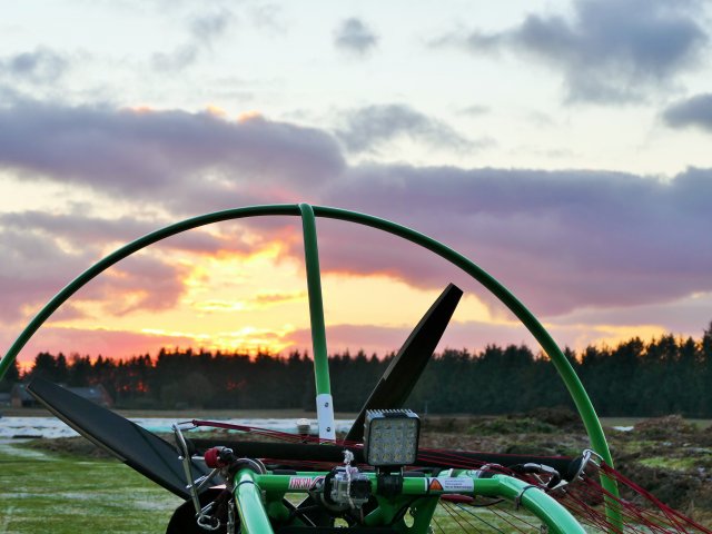 Wenn man auf einer Seite die Trimmleine nicht einhängt, und dann beim Flug nicht sehr energisch gegensteuert, kommt es zu einem Spiralsturz - eventuell bis zum Boden.